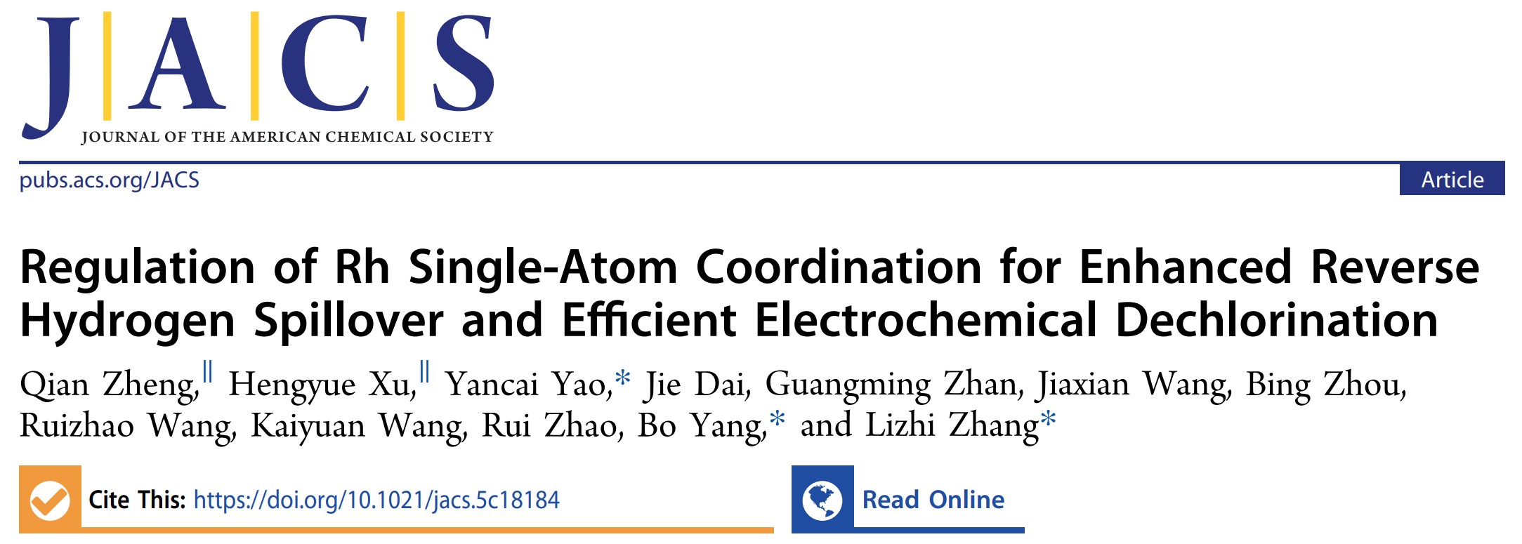 环院智慧|张礼知团队在 J. Am. Chem. Soc. 发文报道铑单原子配位环境调控促进反向氢溢流和电化学还原脱氯