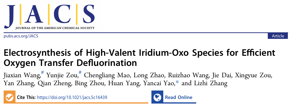 环院智慧|么艳彩副教授JACS发文报道电合成高价铱氧物种用于高效氧转移脱氟