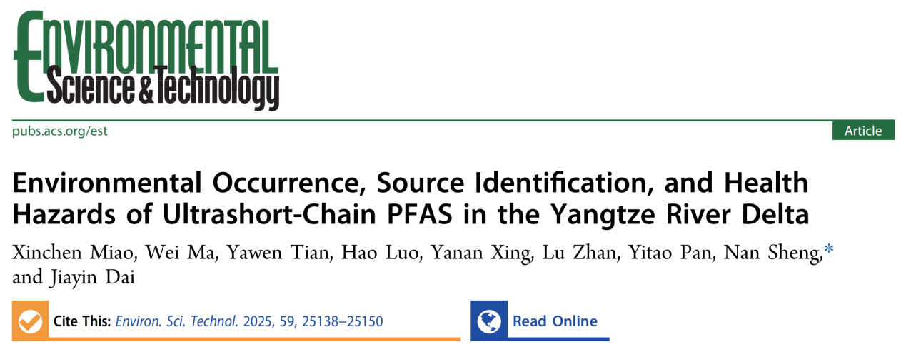 环院智慧 | 戴家银团队ES&T发文揭示长三角一体化示范区超短链PFAS的污染特征、潜在来源与健康风险