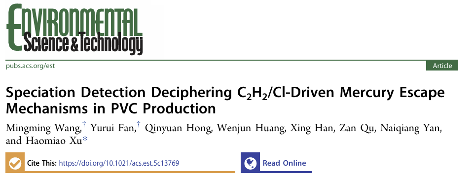 环院智慧|徐浩淼副教授ES&T发文介绍PVC行业多形态汞检测方法并揭示汞逃逸机制